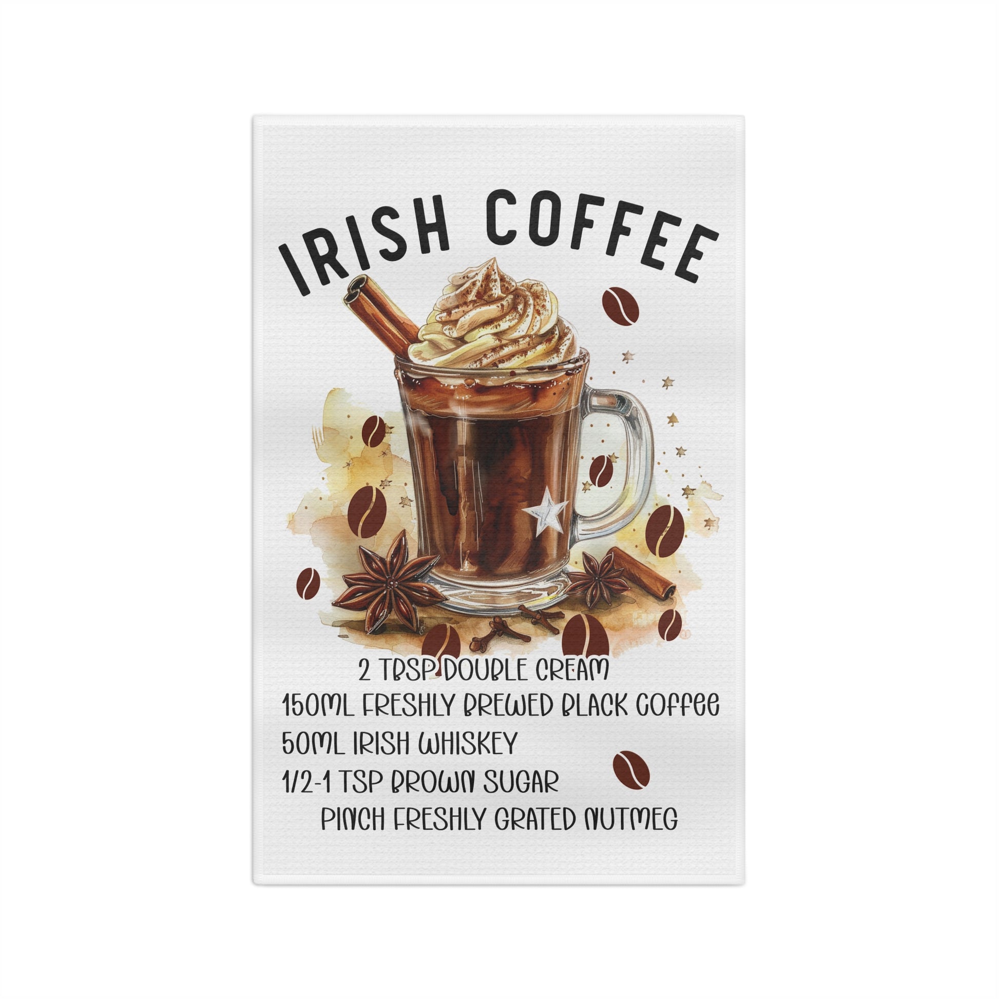 Irish Coffee Microfiber Tea Towel, Kitchen Decor, Gift for Coffee Lovers, St Patrick's Day, Home Bar Essentials, Coffee Recipe Towel